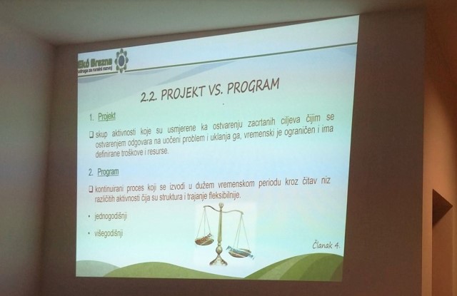Prvi polaznici ovog programa su predstavnici 20 organizacija civilnog društva s područja općine Bukovlje. Prvi modul održava se od 11.01. – 13.01.2016. a radionica za pripremu projektnih prijedloga održat će se po objavi Javnog natječaja.